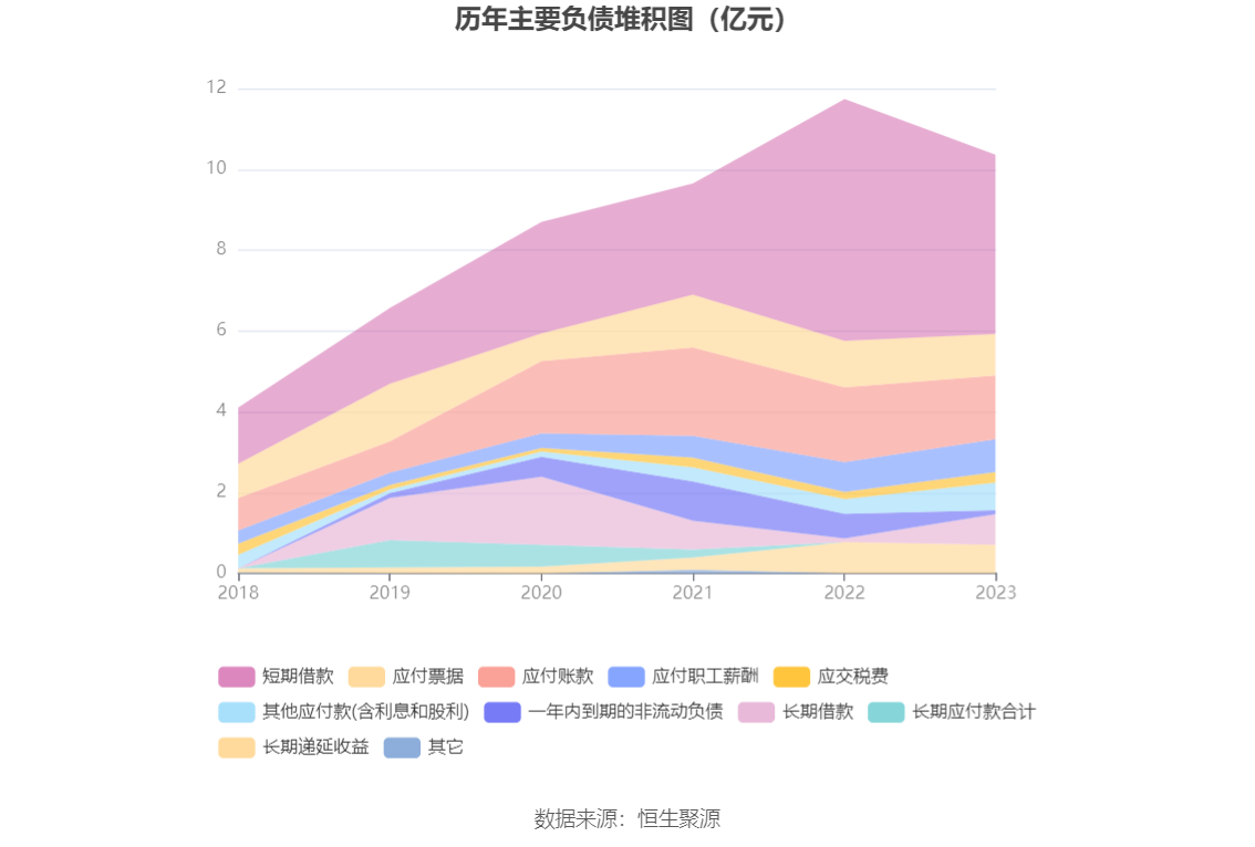 负债重大变化方面,截至2023年年末,公司短期借款较上年末减少25.88%,占公司总资产比重下降5.83个百分点;长期借款较上年末增加740.11%,占公司总资产比重上升3.07个百分点,主要系本期长期借款增加;一年内到期的非流动负债较上年末减少83.46%,占公司总资产比重下降2.21个百分点;其他应付款(含利息和股利)较上年末增加88.82%,占公司总资产比重上升1.54个百分点。
