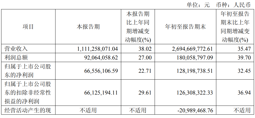 托比网讯,日前,咸亨国际(股票代码:605056)正式发布了其2025年三季报,公司实现营业总收入26.95亿元,同比增长35.47%,归母净利润1.28亿,同比增长32.45%。