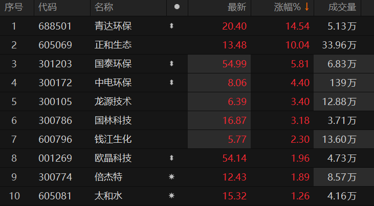 环保板块表现活跃 正和生态涨停