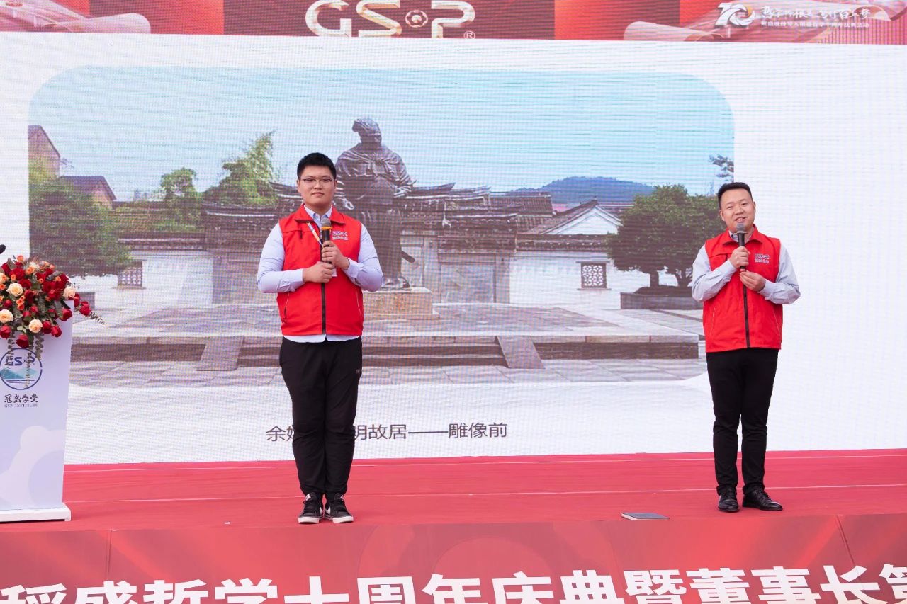 稻盛哲学宣讲团成员羊宁、郑抑平朗诵诗歌《宣讲新征程》演绎十年"用生命唤醒生命"的宣讲传承真谛。