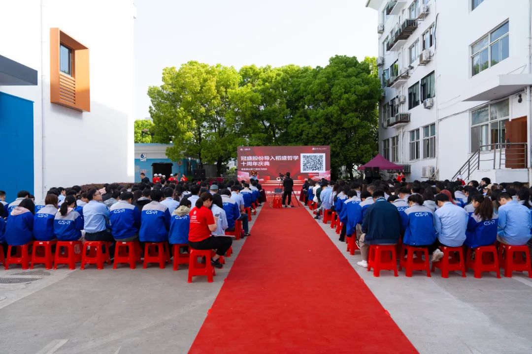 十年深耕,初心如磐!2025年4月14日,冠盛股份“哲学铸根基·笃行百年梦”稻盛哲学导入十周年庆典活动在温州及南京、嘉兴、宁波等多地同步举行。集团3000多名冠盛家人与合作伙伴齐聚一堂,共同见证这一镌刻文化传承与未来展望的里程碑时刻。