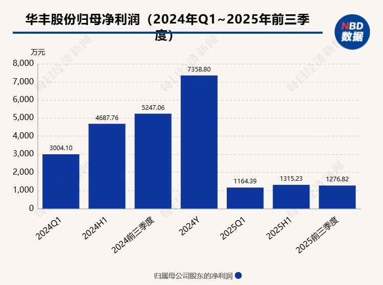 值得注意的是,这种产能过剩的压力在财务数据上已有所体现。根据 华丰股份 发布的2025年第三季度报告,公司今年前三季度实现营业收入5.58亿元,同比下降23.36%;归母净利润仅为1276.82万元,同比大幅下降75.67%。