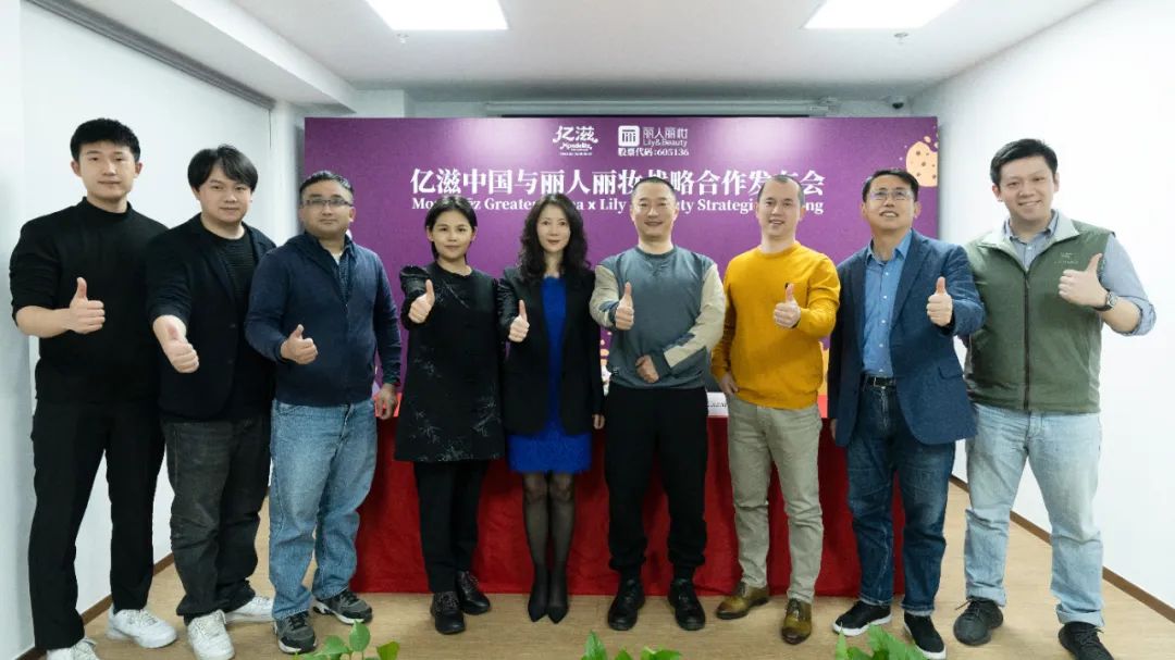 出席签约仪式的有亿滋中国副总裁朱忆菁女士、亿滋中国电商总监修泽荣先生、亿滋中国甜味零食市场营销总监谭旭东先生、亿滋中国媒体采购负责人俞德华先生及亿滋中国市场与发展部团队,与丽人丽妆董事长黄韬、董事黄梅及高管团队等。