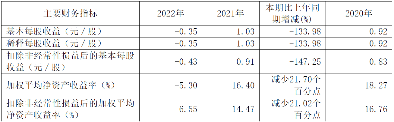 2022年,丽人丽妆的加权平均净资产收益率为-5.30%,上年同期为16.40%,同比减少21.70个百分点;基本每股收益-0.35元/股,上年同期为1.03元/股,同比下降133.98%。
