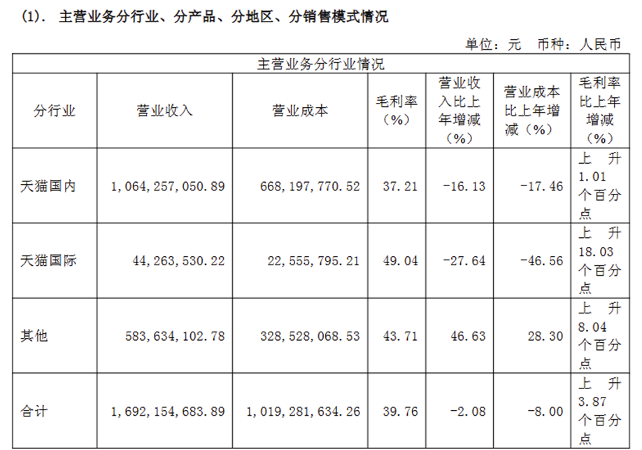 与此同时,公司对天猫单一渠道的深度依赖,进一步放大了经营风险。数据显示,2025年天猫国内为公司贡献营收10.64亿元,同比下降16.13%;天猫国际贡献营收4426.35万元,同比下降27.64%,两大传统渠道营收双双下滑。
