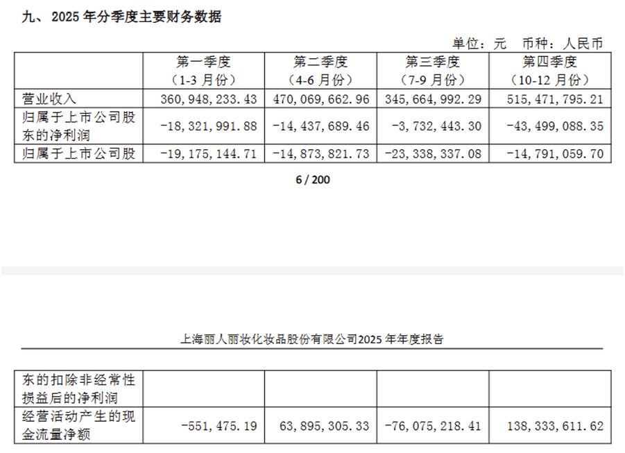 梳理丽人丽妆近五年业绩数据可见,其下滑态势从未得到遏制,2025年年报数据更是将其推向更深的亏损泥潭。