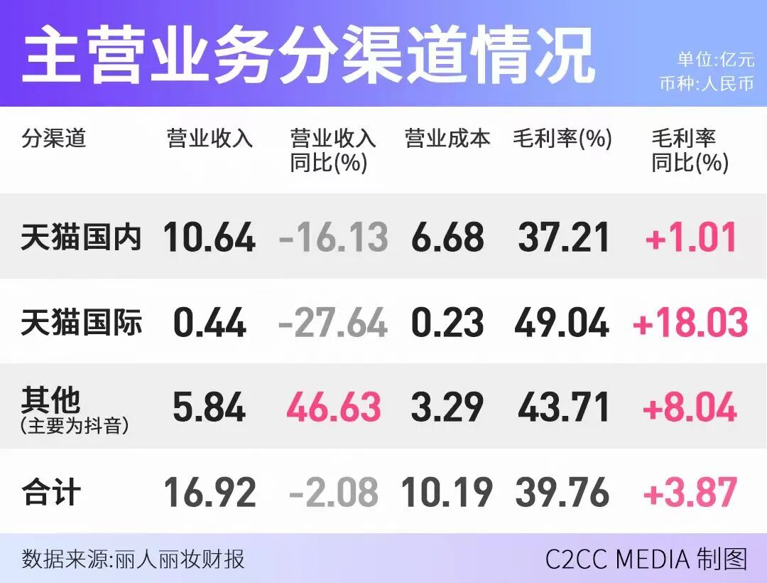 这种流量迭代,直接击中了丽人丽妆的短板。它擅长的是货架电商的运营技巧,如店铺装修、关键词优化、促销活动策划等,但在内容电商的玩法上,缺乏头部内容资源、达人资源和内容创作能力,导致其在抖音等新兴渠道的布局陷入“有量无利”的困境。