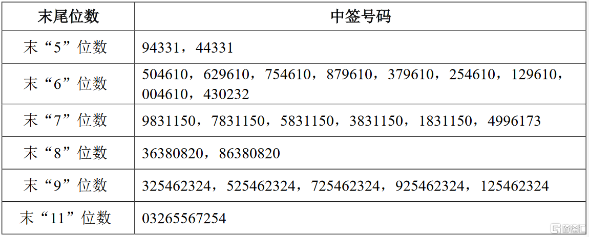 凡参与盛泰转债网上申购的投资者持有的申购配号尾数与上述号码相同的,则为中签号码。中签号码共有324,904个,每个中签号码只能认购1手(1000元)盛泰转债。