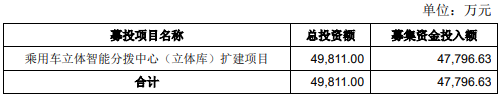 西上海首次公开发行股票募集资金总额53,777.42万元,扣除发行费用后募集资金净额47,796.63万元。西上海于2020年12月1日披露的招股说明书显示,该公司拟将募集资金扣除发行费用后将用于投资以下项目:乘用车立体智能分拨中心(立体库)扩建项目。