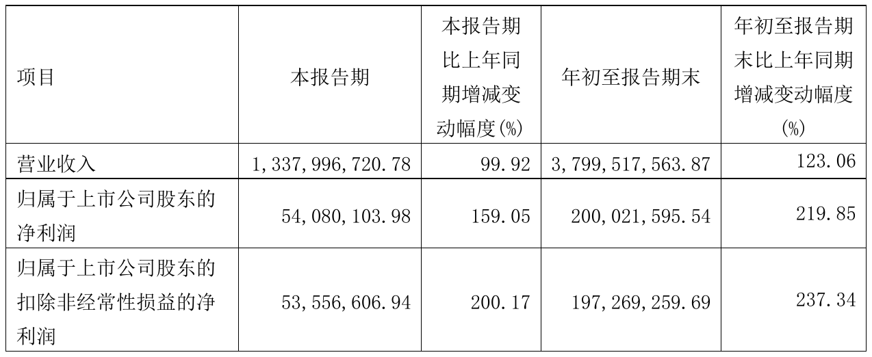 10月28日,聚合顺(605166)近日发布2021年前三季度报告,报告期内营业收入3,799,517,563.87元,同比增加123.06%;净利200,021,595.54元,同比净利增加219.85%。