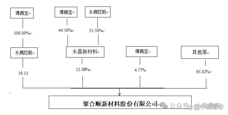 其中,永昌控股和永昌新材料由傅昌宝全资控制,公司实控人为傅昌宝,合计控制聚合顺34.98%股权。