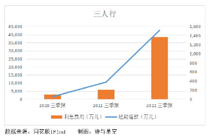 上市时募集的9.88亿资金用于数字营销服务、场景活动服务、校园媒体等扩建项目,仅1年多时间,现金流就告急,三人行又开始借钱了。