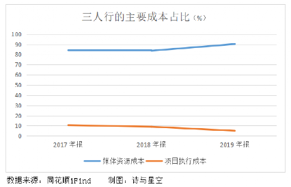 根据招股书显示,2017年至2019年媒体资源成本占比分别为83.98%、83.63%和90.18%,呈上升趋势。