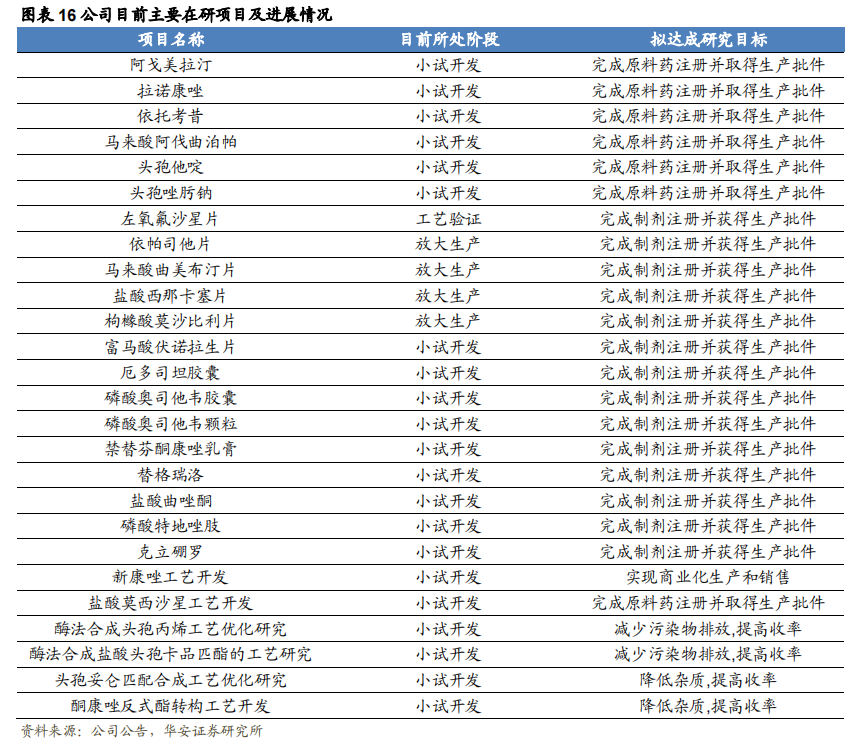 近年来,公司积极优化产品结构,不断丰富自身的产品线种类。公司优选头孢克洛、拉氧头孢钠、头孢美唑钠、头孢唑肟钠、左氧氟沙星等药效优良、副作用小、不易产生耐药性的抗细菌药物品种,并且成功开发出国内领先、环境友好、具有自主知识产权的新工艺,确保所精选的品种占据高端市场的一定份额。截至2023年6月,公司主要在研项目达到39个。