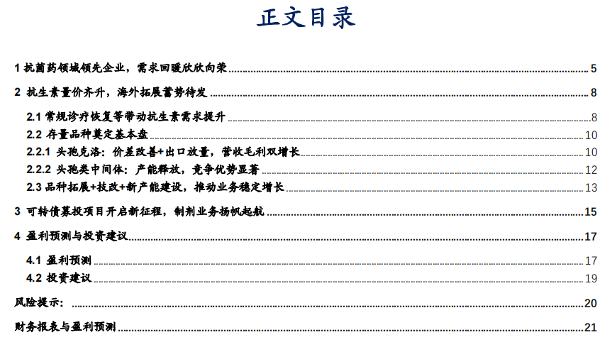 抗菌药领域领先企业,需求回暖欣欣向荣