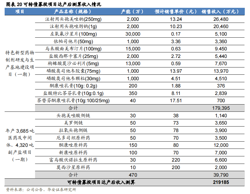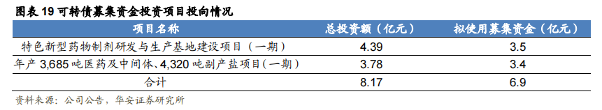 2023年8月公司的可转换公司债券上市,募集资金净额约6.8亿元。主要投向1)特色新型药物制剂研发与生产基地建设项目(一期);2)年产3,685吨医药及中间体、4,320吨副产盐项目(一期)。