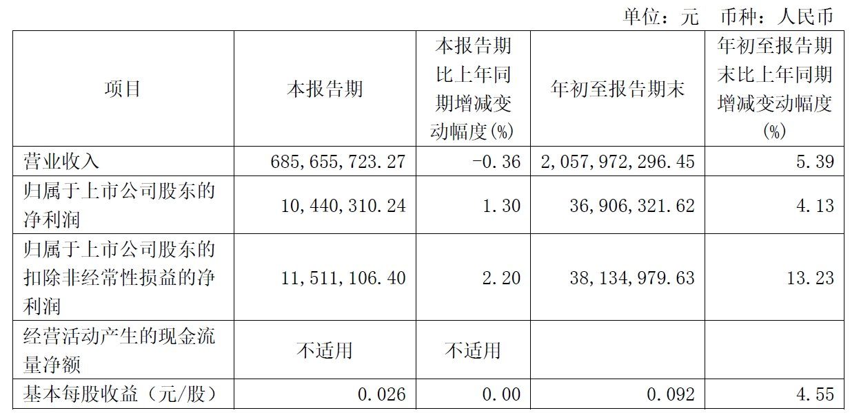 近期,一鸣食品(605179)发布业绩数据:2024年前三季度,一鸣食品实现营业收入20.58亿元,同比增长5.39%;归属于上市公司股东的净利润为0.37亿元,同比增长4.13%。三季度当季,实现营业收入6.86亿元,同比微降0.36%;归属于上市公司股东的净利润为0.1亿,同比增长1.3%。