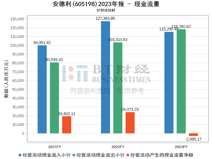 综上所述,安德利在2023年的经营状况显示出稳健的发展趋势。公司通过优化产品结构和提升产品质量,成功提高了盈利能力,同时也在积极拓展新市场和客户群体。尽管现金流量净额出现下降,但公司整体财务结构健康,资产负债率低,盈利能力增强。