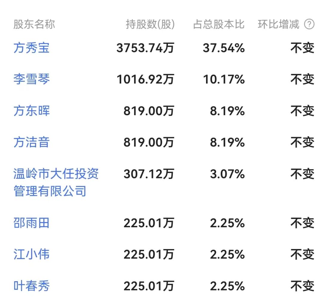 2018年7月,春光科技上市,成为磐安唯一的上市公司,方秀宝堪称突击入股。