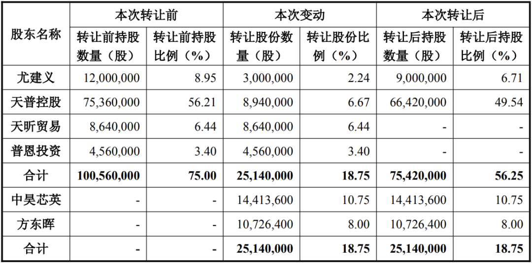 同时,中昊芯英、海南芯繁基金、方东晖拟向天普股份控股股东天普控股分别增资6.19亿元、3.95亿元、5.06亿元,三者构成一致行动人,将合计控制上市公司68.29%股份。