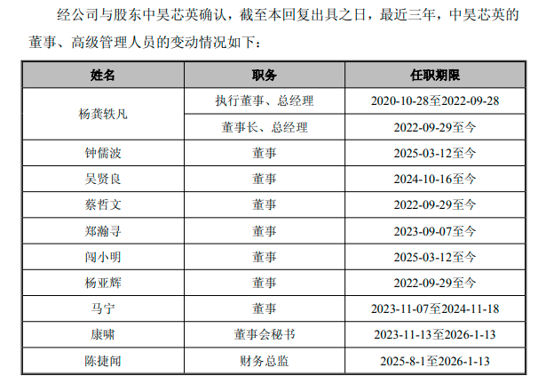 回复在解释“中昊芯英原董事会秘书和CFO任职天普股份对其独立IPO计划的潜在影响”时称:陈捷闻此前于2025年8月入职中昊芯英,入职时间较短,其离职对中昊芯英影响较小,此次入职天普股份属于正常职业发展选择。