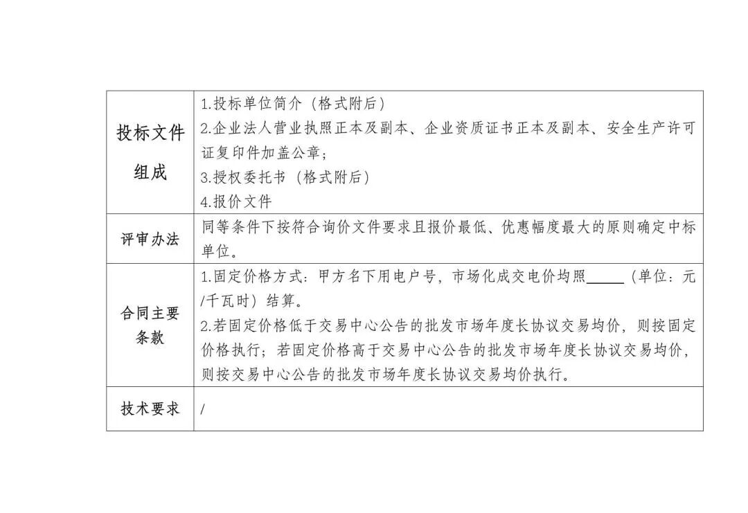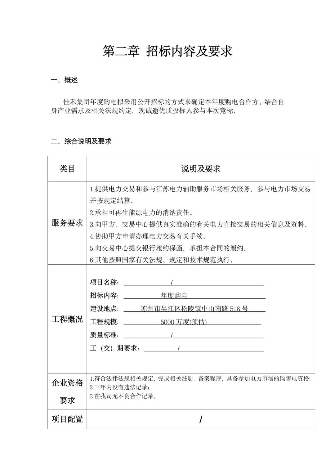 《佳禾食品年度购电》招标公告