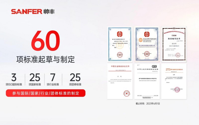 帅丰是集成灶行业唯一一家同时参与国际、国家、行业和团体标准的起草单位,累计参与了60项标准起草与制定工作,牢牢掌握行业标准话语权;