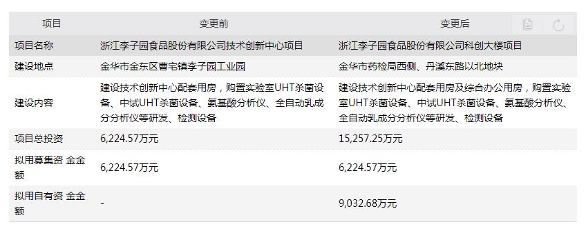 19日晚间,李子园公告,拟变更部分募集资金投资项目,将原项目浙江李子园食品股份有限公司技术创新中心项目,变更为新项目浙江李子园食品股份有限公司科创大楼项目。李子园介绍,新项目投资总额为15257.25万元,原项目此前拟投入募集资金为6244.57万元,差额部分的9032.68万元,拟用自有资金补充。