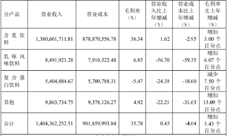 换言之,含乳饮料增长越来越乏力,且其他品类则杯水车薪且大幅下滑。