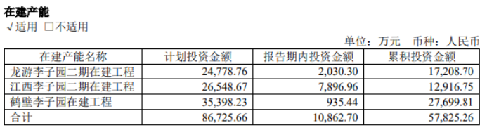 公司目前现有浙江李子园、龙游李子园、云南李子园、江西李子园、鹤壁李子园等主要工厂,实际产能共有约25.50万吨。