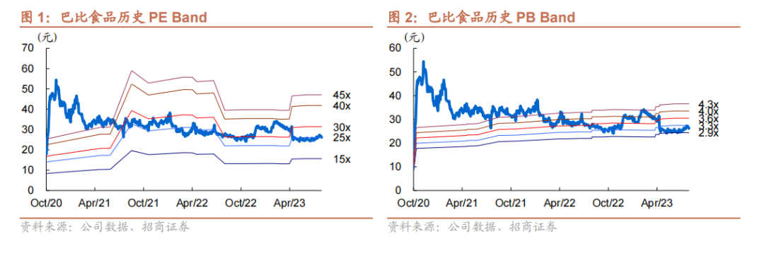 后续展望:全国化进程继续,团餐有望重回增长。公司全年1000家开店计划完成难度不大,全国化脚步从未停止,6月份巴比进入湖南市场,湖南平均每天新增1家门店。门店业务去年下半年仍有缺口,预计23H2单店提升亦有贡献。团餐Q2因为基数问题阶段性下滑,但从绝对金额看已经超过去年Q3/Q4销售额,预计下半年将重回增长通道。中长期看,随着公司门店全国扩张,团餐也随之打开全国市场,华南、华北、华中三大区域团餐收入占公司整体团餐收入的比例从22年同期5%快速提升至15%,后续东莞、武汉工厂投产后,华南、华中团餐业务规模将进一步提升。