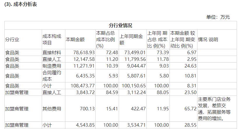 财报显示,2023年,公司加盟商管理成本增加超1000万元至4543.85万元,同比增幅约28.55%。