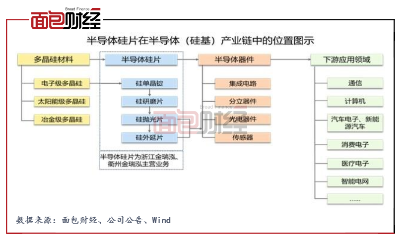 自2015年收购同一实际控制人控制下的公司浙江金瑞泓后,公司的主营业务延伸至上游的半导体硅片的研发、生产和销售,半导体硅片主要产品包括硅研磨片、硅抛光片、硅外延片等。浙江金瑞泓已经成为ONSEMI、AOS、日本东芝公司、台湾汉磊等国际知名跨国公司以及中芯国际、华虹宏力、华润微电子等国内知名企业的重要供应商。