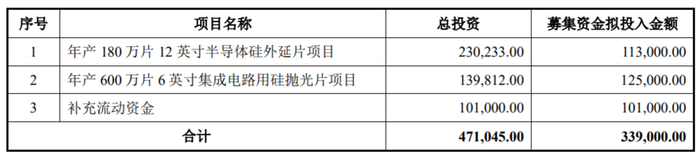 根据公司披露的《杭州立昂微电子股份有限公司公开发行可转换公司债券募集说明书》,公司本次公开发行可转换公司债券募集资金扣除发行费用后的募集资金净额将用于年产180万片12英寸半导体硅外延片项目、年产600万片6英寸集成电路用硅抛光片项目、补充流动资金。