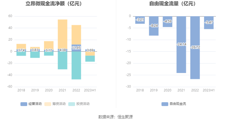 进一步统计发现,2023年上半年公司自由现金流为-5.47亿元,上年同期为-11.01亿元。