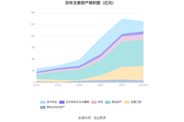 资产重大变化方面,截至2023年二季度末,公司货币资金余额较上年末减少33.30%,占公司总资产比重下降6.69个百分点;在建工程较上年末增加13.87%,占公司总资产比重上升3.02个百分点;固定资产较上年末增加3.68%,占公司总资产比重上升2.41个百分点;应收账款较上年末增加14.10%,占公司总资产比重上升0.60个百分点。