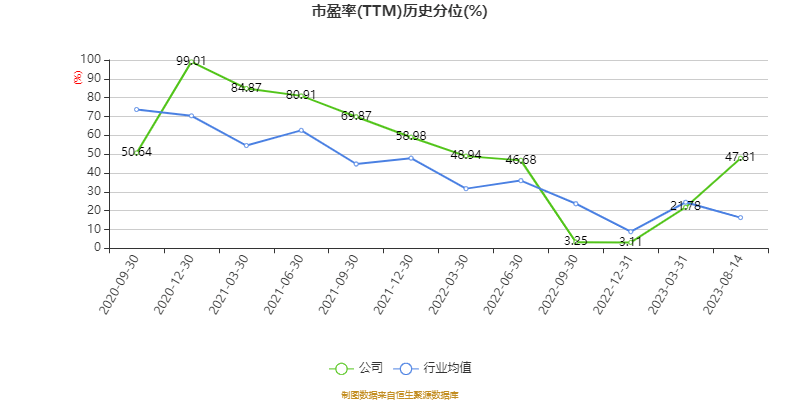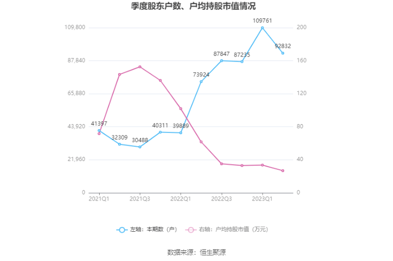 筹码集中度方面,截至2023年二季度末,公司股东总户数为9.28万户,较一季度末下降了1.69万户,降幅15.42%;户均持股市值由一季度末的33.60万元下降至26.78万元,降幅为20.30%。