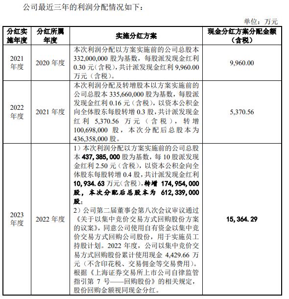 宏柏新材最近三年以现金方式累计分配的利润为30,694.85万元,占最近三年实现的合并报表归属于母公司所有者的年均净利润21,422.95万元的比例为143.28%。