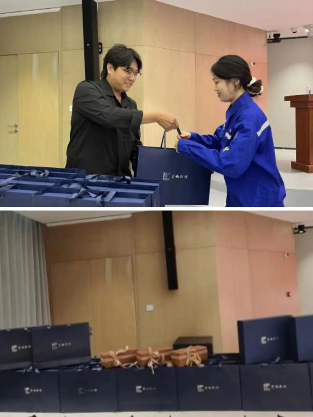 副总经理纪冠丞为新员工发放入职礼品