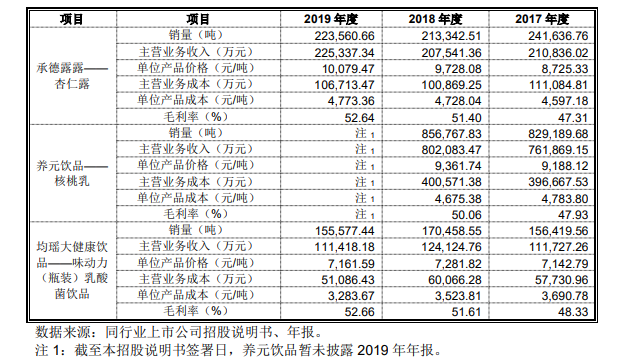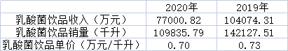 不仅存货周转率下降,上市后,均瑶健康也没有止住量价齐跌的僵持局面。IPO招股书显示,尽管2018年均瑶健康的主营产品单价略逊色于承德露露和养元饮品,但是2019年均瑶健康产品的销量和平均售价较2018年继续下滑。2020年财报显示,均瑶健康乳酸菌饮品的销量和收入持续下降,中国网财经记者计算得出乳酸菌饮品的单价为0.70万元/千升,较2019年的该产品单价0.73万元/千升有所下滑。