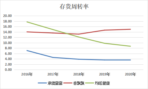 作为乳制品企业,以销定产、以产定购、兼顾库存模式下的均瑶健康存货周转率陡降显得匪夷所思。2016年以来,均瑶健康的存货周转率直线下降,而同行业公司承德露露存货周转率在2017年稍有下滑后波动较小,香飘飘存货周转率呈上升趋势。均瑶健康在招股书中提到,公司采用以销定产的生产模式,生产周期短,公司主要产品的保质期为六个月,备货相对较少,库存商品积压较小,公司存货主要为原材料(包括委托加工物资),存货周转较快。可以看到,在行业内,均瑶健康的存货周转率在2016年的确最高,相比承德露露和香飘飘遥遥领先,但是2020年均瑶健康的存货周转率已经明显逊色于香飘飘。