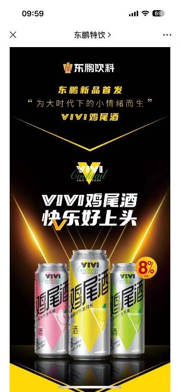 近日,东鹏饮料(605499.SH)推出了酒类新品,其官方微信宣布,推出酒精度为8度的新品“VIVI鸡尾酒”,分为柑橘、白桃、青提三个口味。