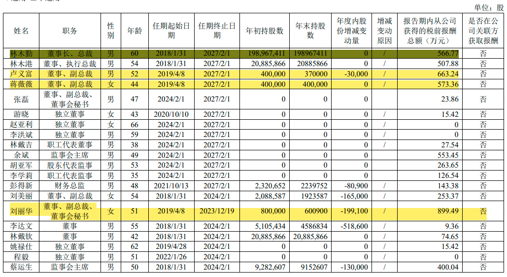 第7位的是东鹏饮料的董事、执行总裁林木港,2023年年薪507.88万元,同比增长29.97%。