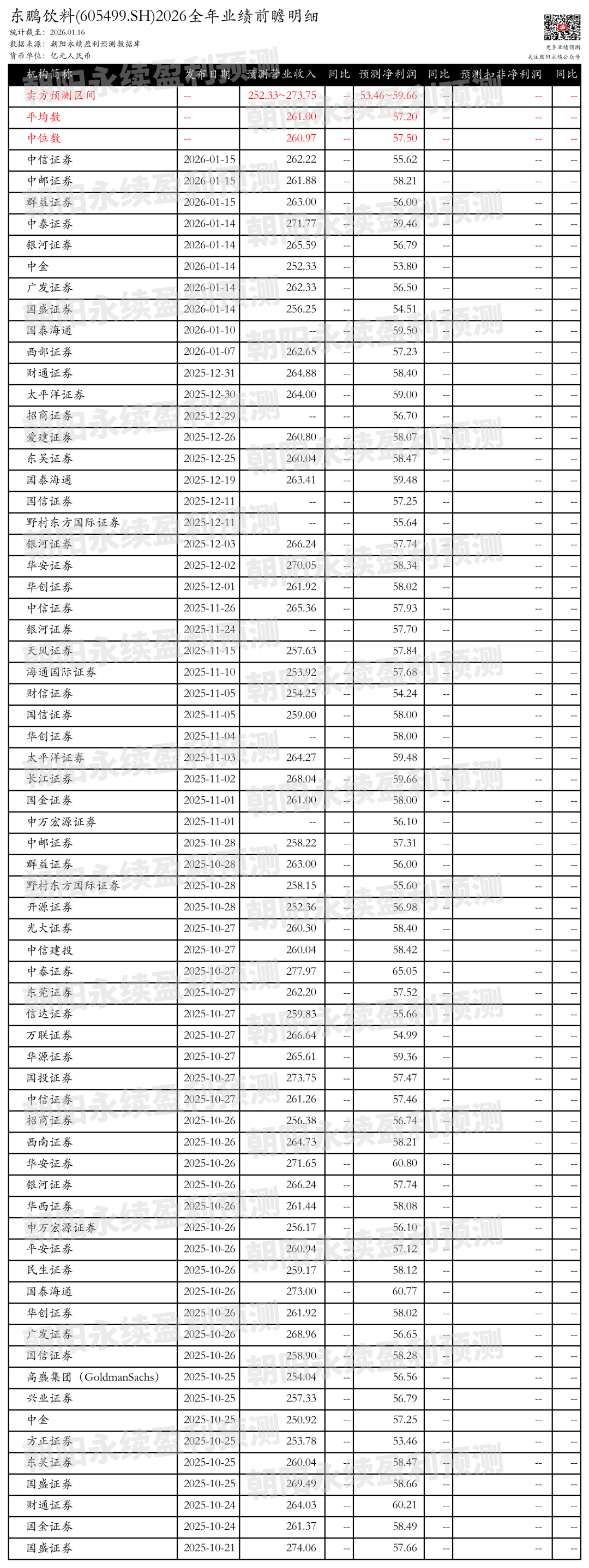 截至2026年01月16日,根据朝阳永续季度业绩前瞻数据: