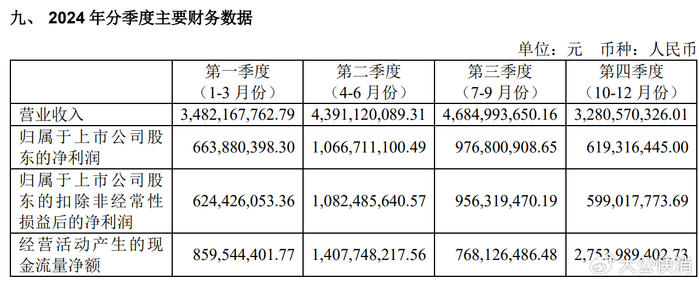 表面上,公司全年营收突破200亿元大关至约208.75亿元,同比增长约31.80%;归属于上市公司股东的净利润约44.15亿元,同比增长约32.72%,延续了近年“高增长”态势。但财报细节与单季度数据全面暴露增长隐忧:核心单品增速骤降、现金流严重背离、渠道返利透支未来、存贷双高风险凸显、低毛利新品拖累盈利。