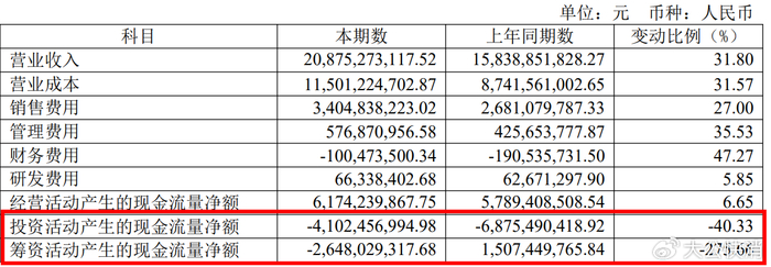 此外,虽然东鹏饮料2025年的总资产同比增长约17.8%至约267.21亿元,但其2025年投资现金流净额约-41.02亿元、筹资现金流净额约-26.48亿元,全年现金净流出约67.5亿元,货币资金增速远低于资产扩张速度,资金链承压。
