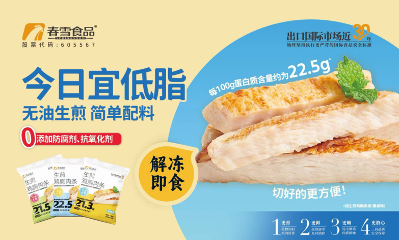 作为优质健康蛋白的供应品牌,公司隆重推出了新产品——生煎鸡胸肉条,主打简单配料解冻即食,更符合现代年轻人的饮食习惯。