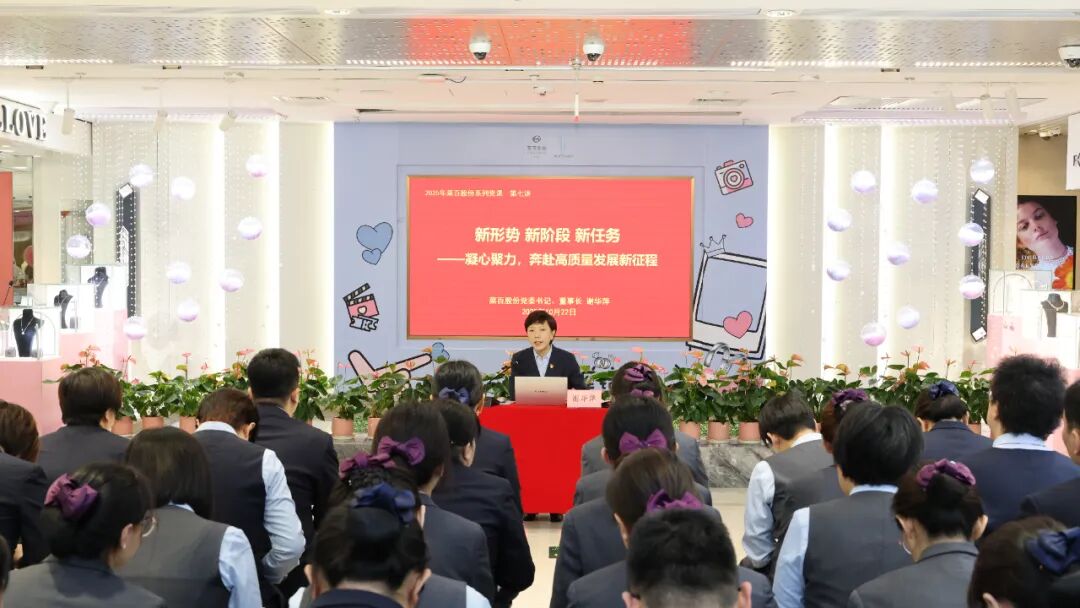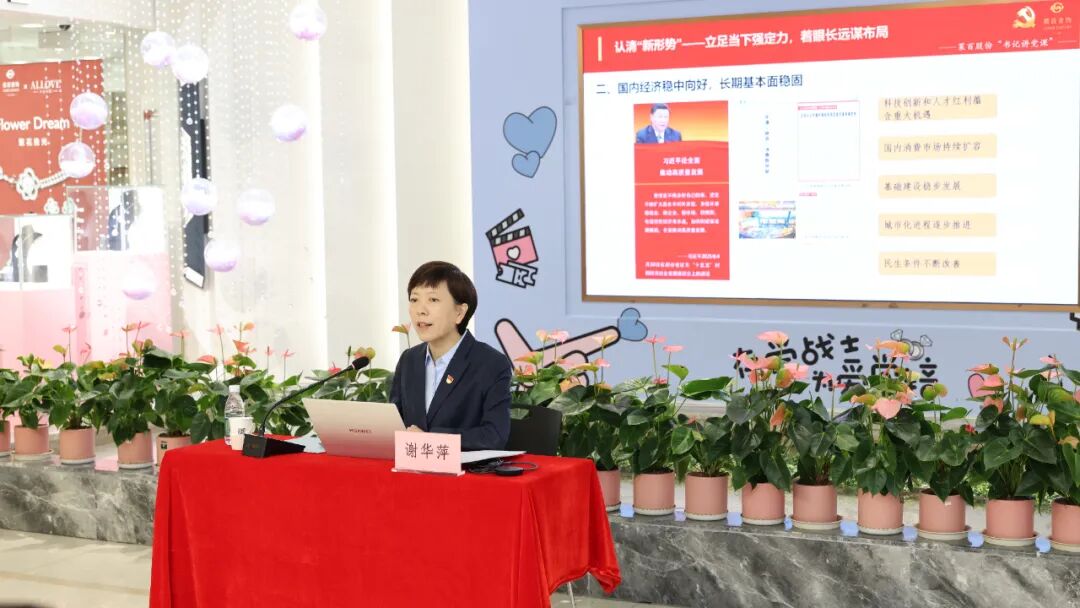 10月22日,菜百股份党委书记、董事长谢华萍为全体党员、入党申请人以及企业管理干部开展了一场题为《新形势新阶段新任务——凝心聚力,奔赴高质量发展新征程》的党课宣讲,此次宣讲是2025年度菜百股份书记讲党课系列活动的收官之作。