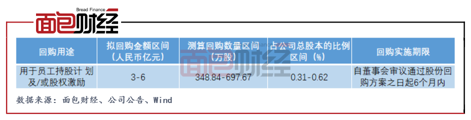 公司拟用于回购的资金总额不低于3亿元,不超过6亿元,资金来源为公司自有资金。截至2021年三季度末,公司货币资金为57.22亿元。