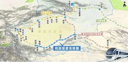 和若铁路地处有着“死亡之海”之称的世界第二大流动性沙漠塔克拉玛干沙漠南缘,西起中国新疆维吾尔自治区和田地区和田市,东至巴音郭楞蒙古自治州若羌县,线路全长825.476公里,共设20个站点,其中9个客运车站,是国家中长期铁路网规划中西部地区重要区域路网干线,是新疆南疆地区沟通西北、西南地区的便捷运输通道,也是世界首条环沙漠铁路,更是深入推进“一带一路”建设的重要工程。